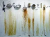 False Promises, 2009. Used metal kitchen utensils, honey, beeswax, polycotton, metal brackets. 6' H x 9' W x 3' D
