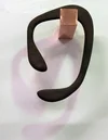 VIcissitude, frontal view showing 3 ft tall ceramic loop hanging over 2 ft long copper bar